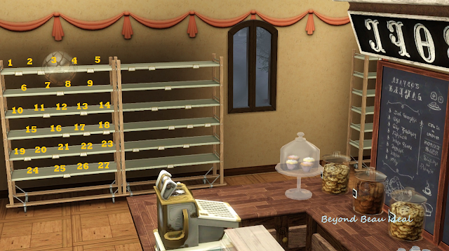擺放位置: 我把糕點櫃和麵包架相應位子的Slot數字,加到圖片上去了。